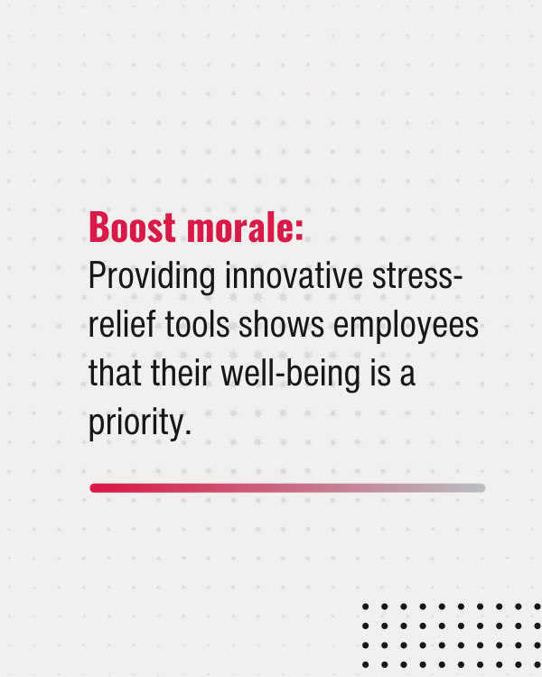 In a corporate environment where stress levels can be high, these tools provide employees with a quick, easy way to alleviate tension and maintain their composure during stressful situations,such as important meetings or tight deadlines. This can lead to a calmer, more focused, and productive workforce.